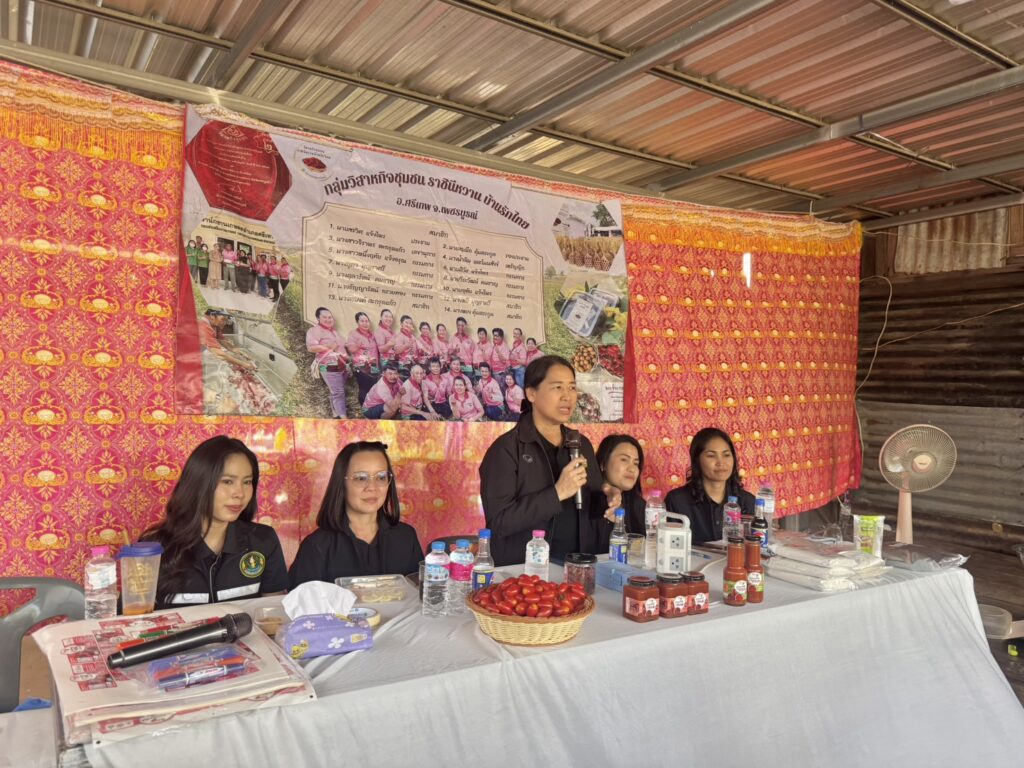 วันพฤหัสบดีที่ 20 พฤศจิกายน 2568 นายวรรณภลย์ ทองบุดดี เกษตรจังหวัดเพชรบูรณ์ มอบหมายให้ นางสาวสุภาวดี พลโยธา นักวิชาการส่งเสริมการเกษตรปฏิบัติการ ลงพื้นที่เพื่อติดตามและเยี่ยมเยียนเกษตรกรกลุ่มวิสาหกิจชุมชนราชินีหวาน บ้านรักไทย ในการเตรียมความพร้อมขับเคลื่อนโครงการส่งเสริมและพัฒนาเพื่อเข้าสู่ห่วงโซ่อุปทานและบริการมูลค่าสูง ประจำปีงบประมาณ พ.ศ. 2569 ซึ่งมี นางสาวเสาวนิต ทับทิมจรูญ เกษตรและสหกรณ์จังหวัดเพชรบูรณ์ พร้อมด้วยเจ้าหน้าที่สำนักงานเกษตรและสหกรณ์จังหวัดเพชรบูรณ์ นางสาวปวริศา นาคเพ็ง เกษตรอำเภอศรีเทพ พร้อมด้วยเจ้าหน้าที่สำนักงานเกษตรอำเภอศรีเทพ ร่วมวางแผนการดำเนินงานและจัดทำปฏิทินการผลิต/การปลูกมะเขือเทศราชินี พร้อมทั้งมีการให้คำแนะนำในการก่อสร้างโรงคัดบรรจุและแปรรูปอาหาร จากเจ้าหน้าที่สำนักงานสาธารณสุขจังหวัดเพชรบูรณ์ และสำนักงานสาธารณสุขอำเภอศรีเทพ นอกจากนั้น ได้มีการประชุมหารือช่องทางของแหล่งเงินทุนในการต่อยอดการทำธุรกิจ โดยมีเจ้าหน้าที่จากสำนักงานกองทุนฟื้นฟูและพัฒนาเกษตรกร สาขาจังหวัดเพชรบูรณ์ เป็นผู้ให้ข้อมูลเพื่อเป็นแนวทางในการขับเคลื่อนกลุ่มวิสาหกิจชุมชนฯ ให้เข้มแข็งและยั่งยืนต่อไป ณ ที่ทำการวิสาหกิจชุมชนราชินีหวานบ้านบ้านรักไทย อำเภอศรีเทพ จังหวัดเพชรบูรณ์
