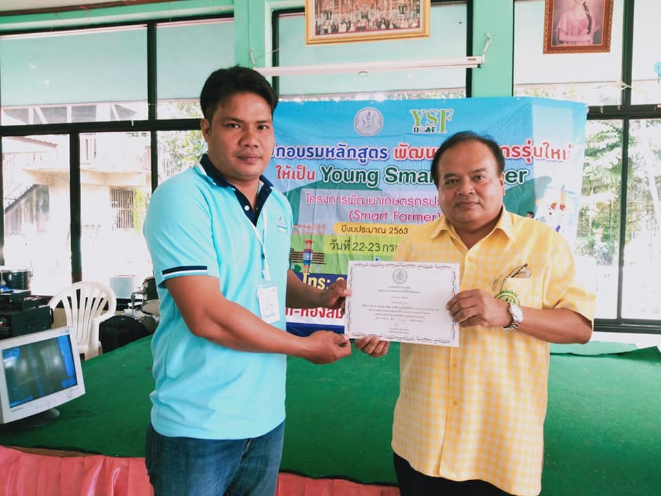 ในการนี้ได้มอบประกาศนียบัตรแก่เกษตรกรรุ่นใหม่ที่ผ่านการฝึกอบรมหลักสูตรพัฒนาเกษตรกรรุ่นใหม่ให้เป็น Young Smart Farmer จำนวน 41 คน