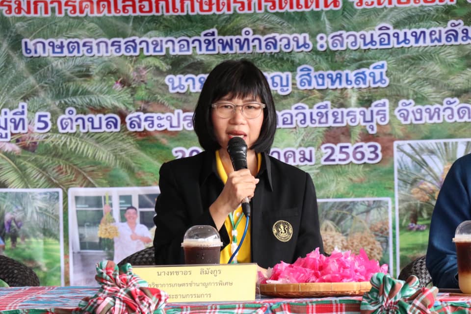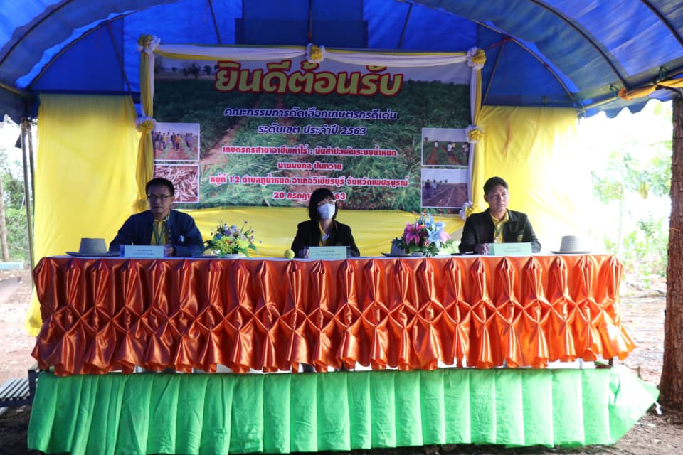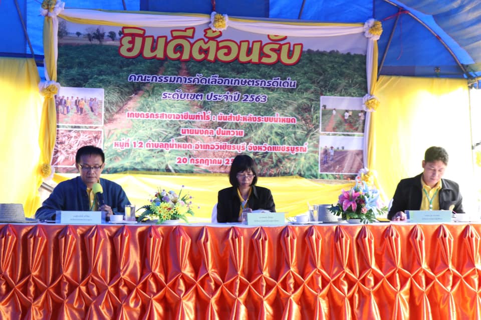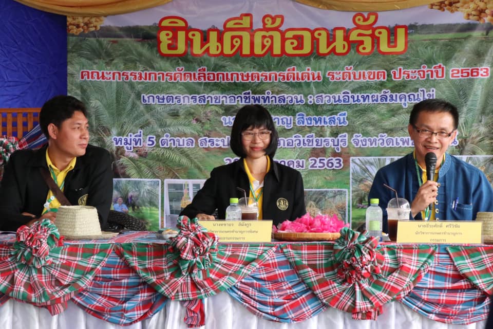 นายอนันต์ ตั่นฉ้วน เกษตรจังหวัดเพชรบูรณ์ ร่วมเป็นเกียรติ ในการคัดเลือกเกษตรกรดีเด่น สาขาอาชีพทำสวนระดับเขต ปี 2563 ของนายอภิชาญ สิงหเสนี เกษตรกร หมู่ที่ 5 ตำบลสระประดู่ อำเภอวิเชียรบุรี จังหวัดเพชรบูรณ์ โดยมีนายปกรณ์ ตั้งใจตรง นายอำเภอวิเชียรบุรี กล่าวต้อนรับ นางวัชราภรณ์ มณฑาจันทร์ เกษตรอำเภอวิเชียรบุรี และเจ้าหน้าที่สำนักงานเกษตรอำเภอวิเชียรบุรี ให้การต้อนรับ คณะกรรมการคัดเลือกเกษตรกรดีเด่นระดับเขต 6 พร้อมเยี่ยมชมกิจกรรมภายในศูนย์เรียนรู้