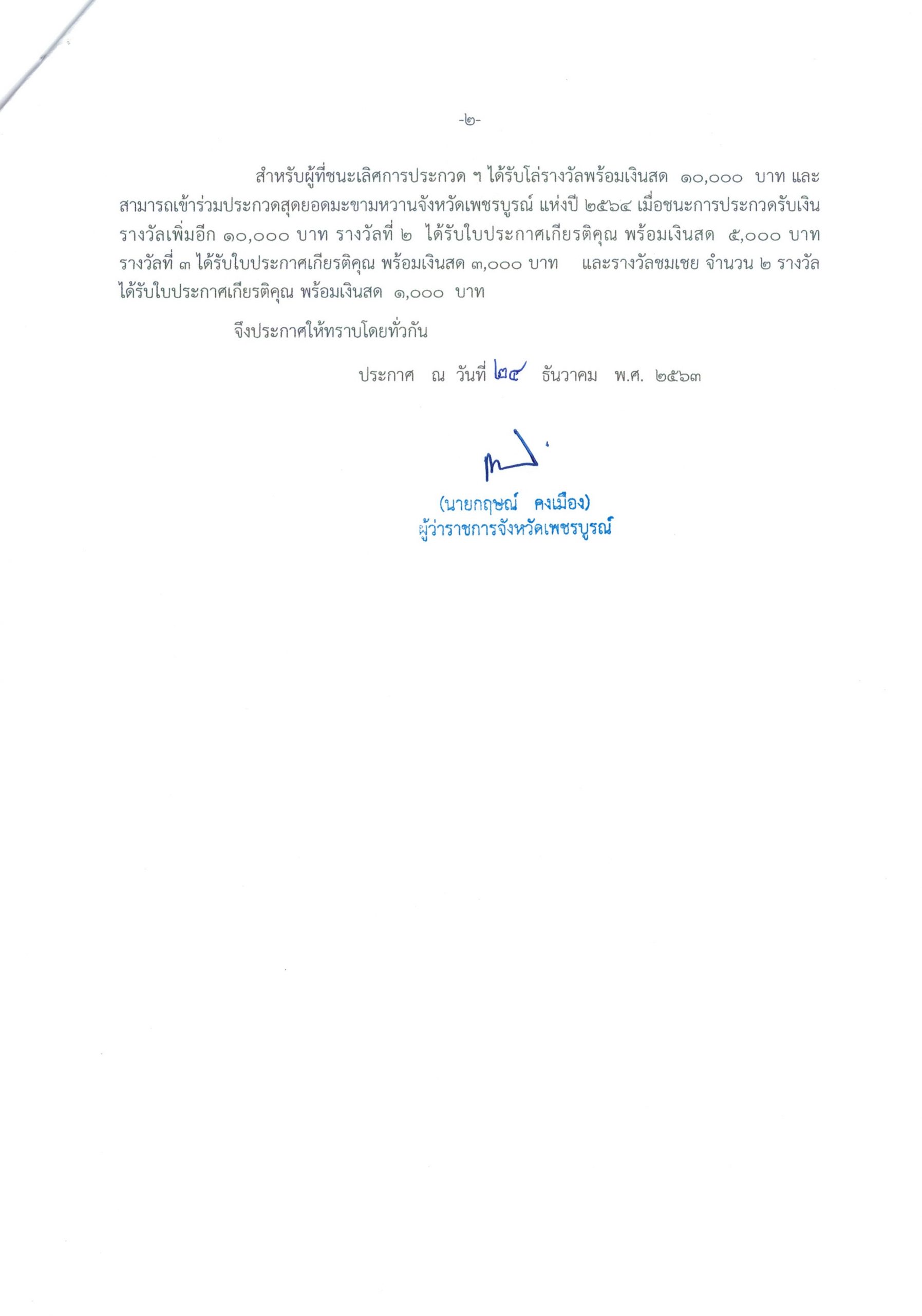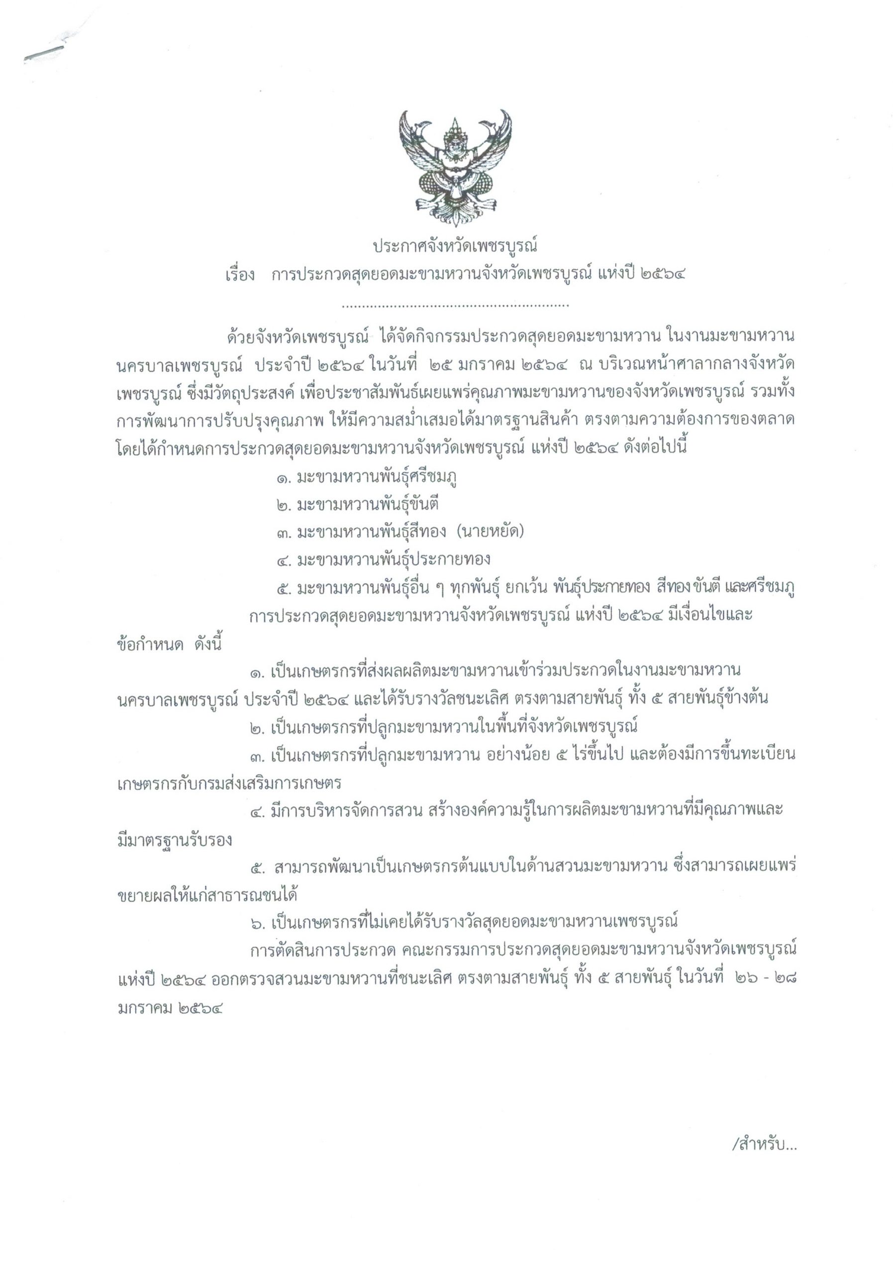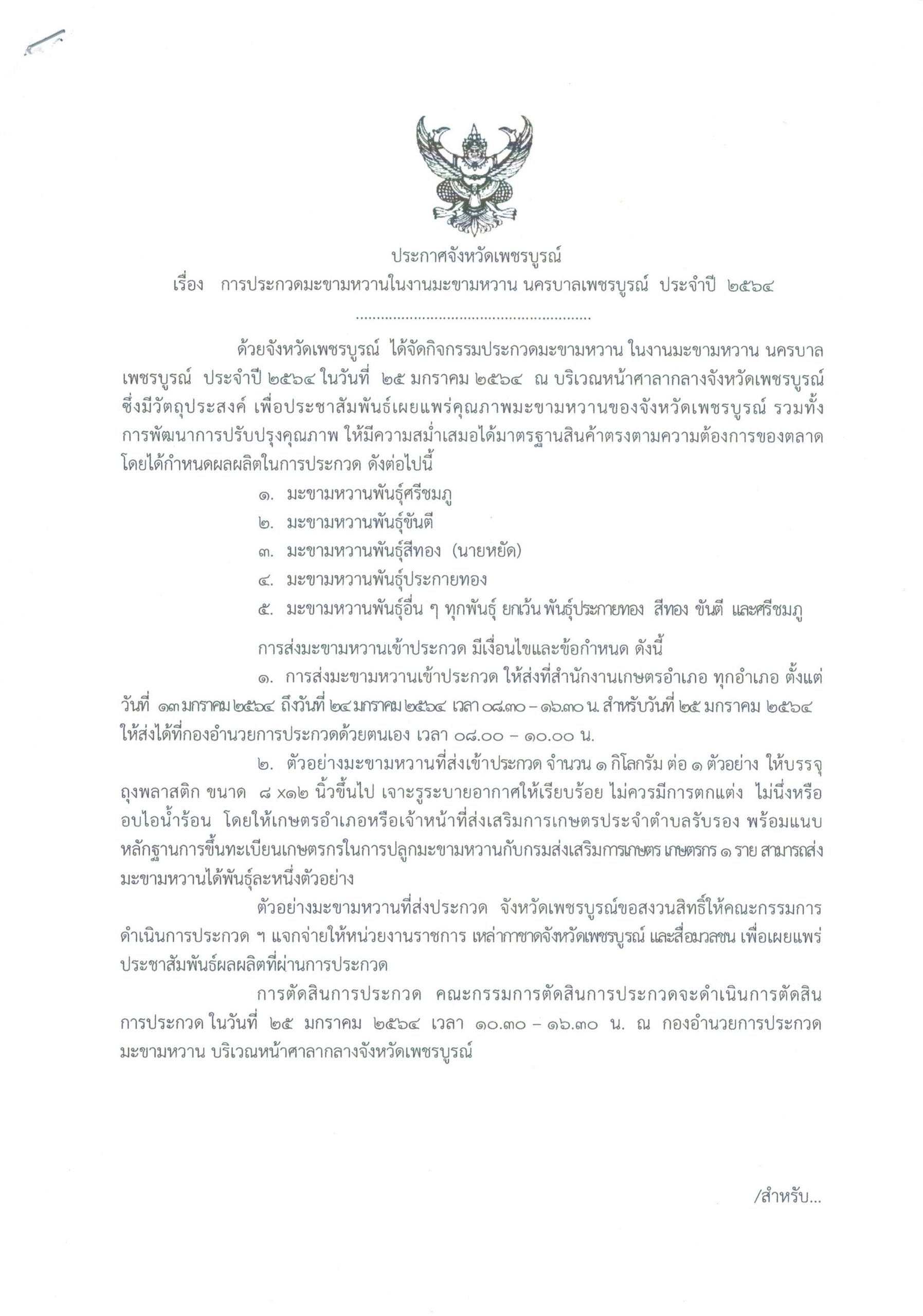 รื่อง การประกวดสุดยอดมะขามหวานจังหวัดเพชรบูรณ์ แห่งปี 2564 (หน้า 1) (หน้า2)