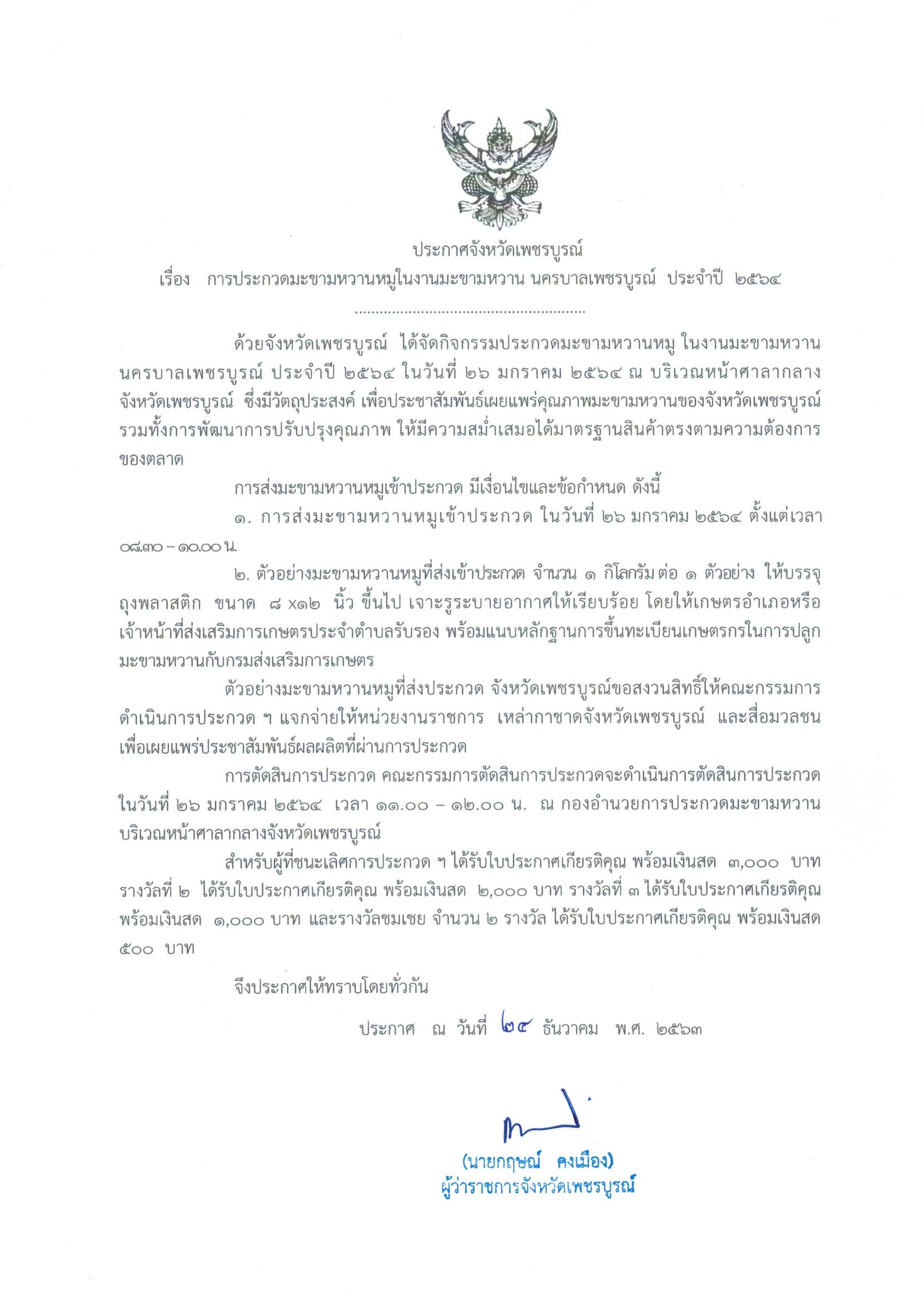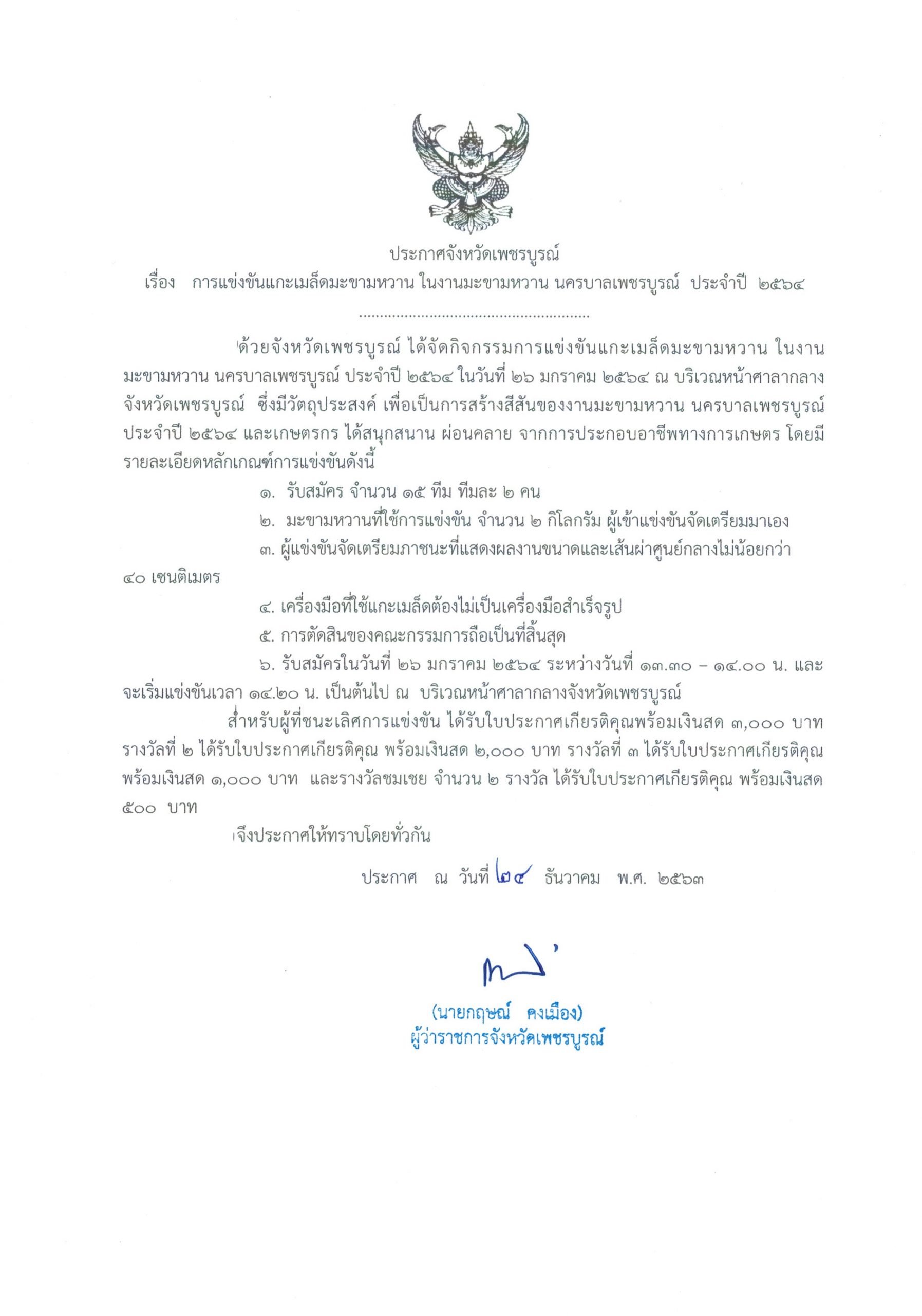 เรื่อง การประกวดมะขามหวานในงานมะขามหวาน นครบาลเพชรบูรณ์ ประจำปี 2564 (หน้า1) (หน้า2)